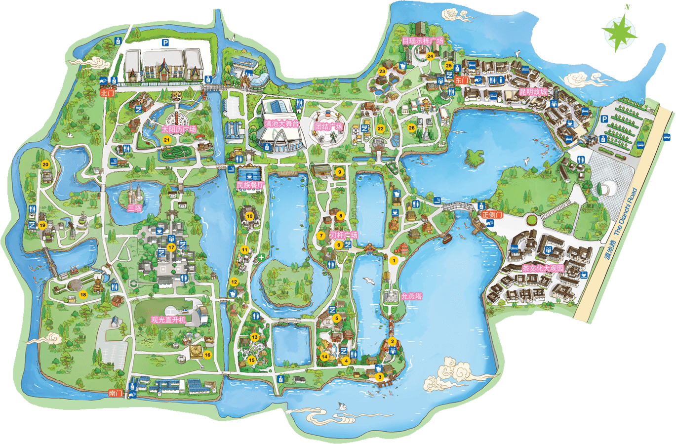 哈尼族是我國西南邊疆歷史悠久的農(nóng)耕民族,人口約130余萬,主要居住在云南省紅河、元江、瀾滄江流域的無量山區(qū)和哀牢山區(qū)。哈尼寨占地15畝,展現(xiàn)了最具有代表性的蘑菇房和愛尼母子房,日月廣場;有表現(xiàn)哈尼族關于魚生萬物傳說的大型浮雕,有表現(xiàn)哈尼族遷徙傳說的圖騰柱;有體現(xiàn)生產(chǎn)生活的磨房、龍巴門、秋千場、梯田;寨神樹和祭石表現(xiàn)了哈尼族“萬物有靈、多神崇拜”的宗教信仰。哈尼傳統(tǒng)的節(jié)日有“年首扎勒特”、“苦扎扎”...